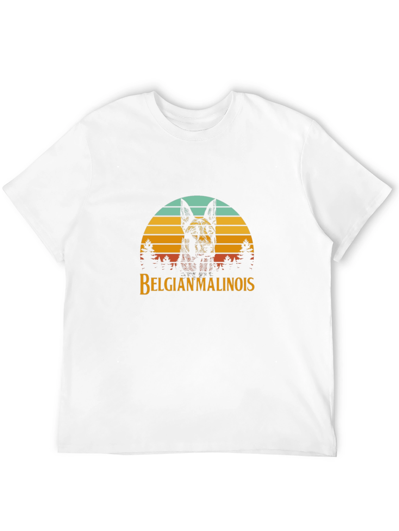 Show your love for Belgian Malinois dogs with this stylish graphic tee. The shirt features a vintage-inspired sunset design with a detailed silhouette of a Belgian Malinois head, framed by trees, above the words "Belgian Malinois". Made from comfortable, soft fabric, this black t-shirt is perfect for everyday wear. Its classic fit makes it a great addition to any casual wardrobe. Wear it while walking your dog, at the park, or just relaxing at home. This tee is a must-have for any Belgian Malinois owner or dog lover. Grab yours now!
