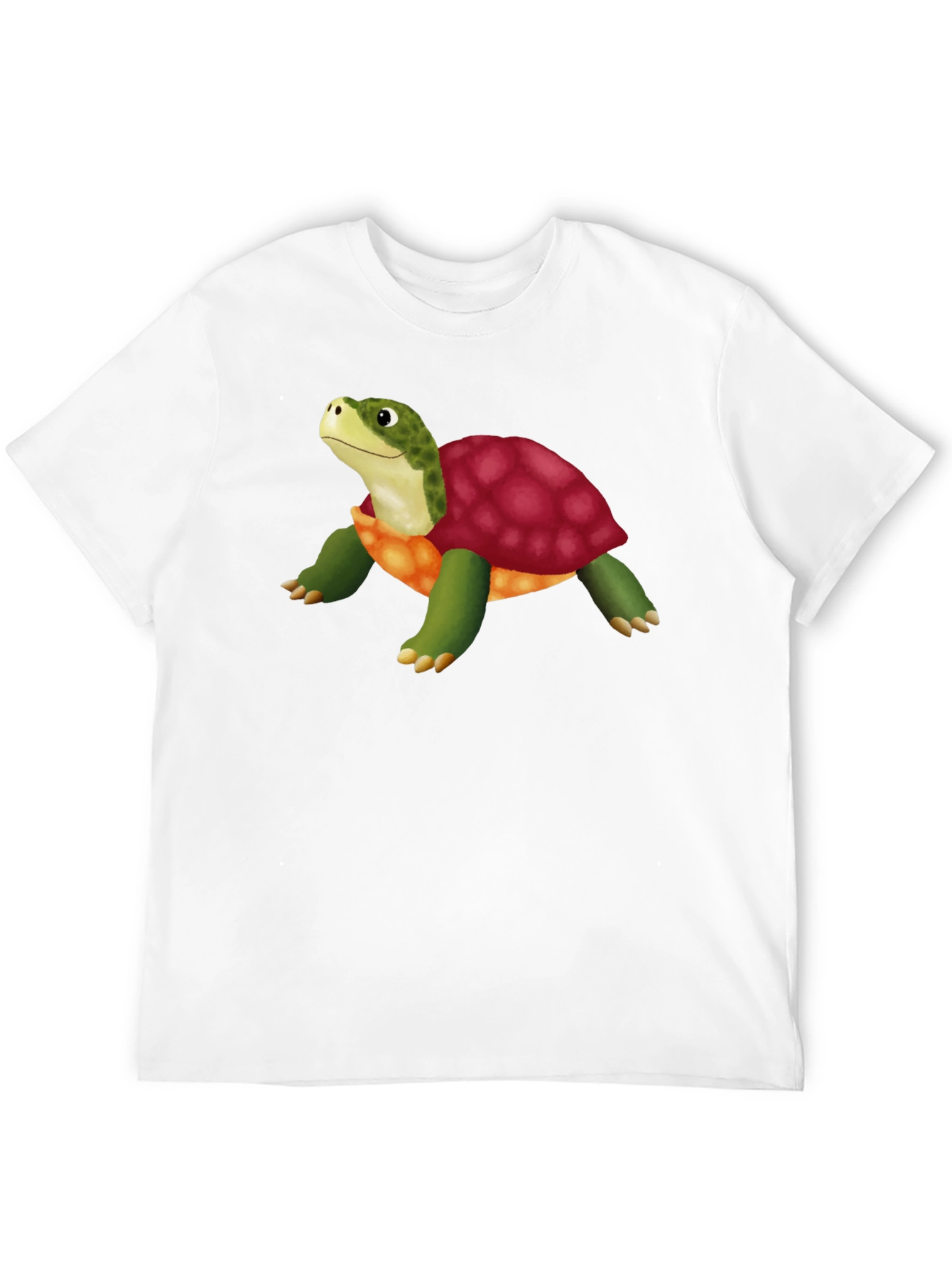 Show off your unique style with this eye-catching black t-shirt. Featuring a vibrant cartoon turtle graphic, this tee is perfect for animal lovers and those with a playful sense of fashion. The detailed print showcases a colorful turtle with a red shell and green body, adding a fun and lively touch to your outfit. Made from a comfortable and breathable fabric, this t-shirt is ideal for casual wear, parties, or expressing your personality. Pair it with jeans, shorts, or a skirt for a standout look. A great gift for anyone who loves turtles or unique graphic tees!