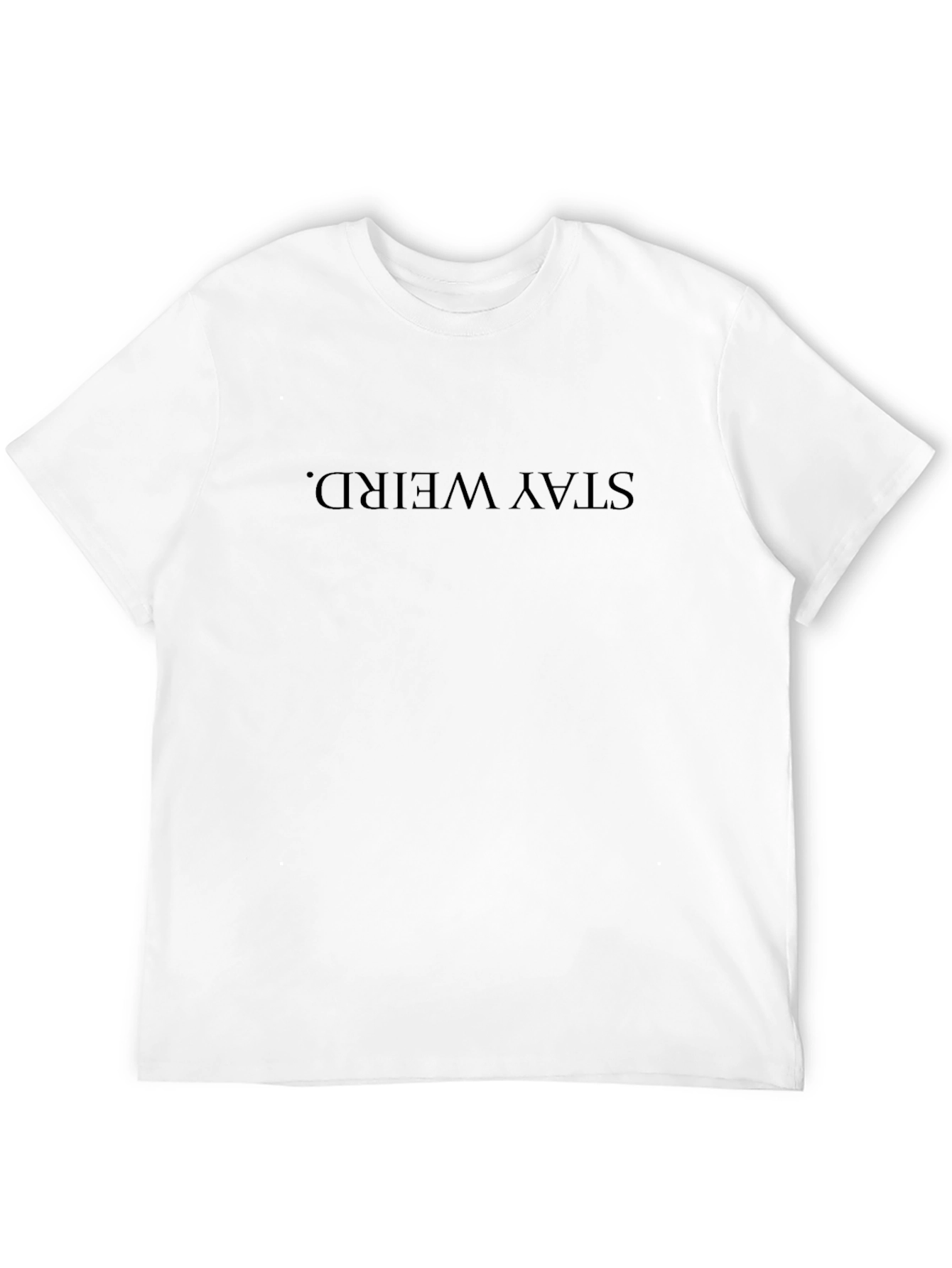 Embrace your unique side with this black "Stay Weird" graphic tee! The shirt features a simple yet bold statement perfect for expressing individuality. Made from a soft, breathable fabric, this tee offers a comfortable fit for everyday wear. The design is minimalist, making it versatile enough to pair with any casual outfit. Whether you're hitting the streets or lounging at home, let your personality shine through with this easy-to-wear, statement piece. It makes a great gift for those who appreciate quirky fashion.