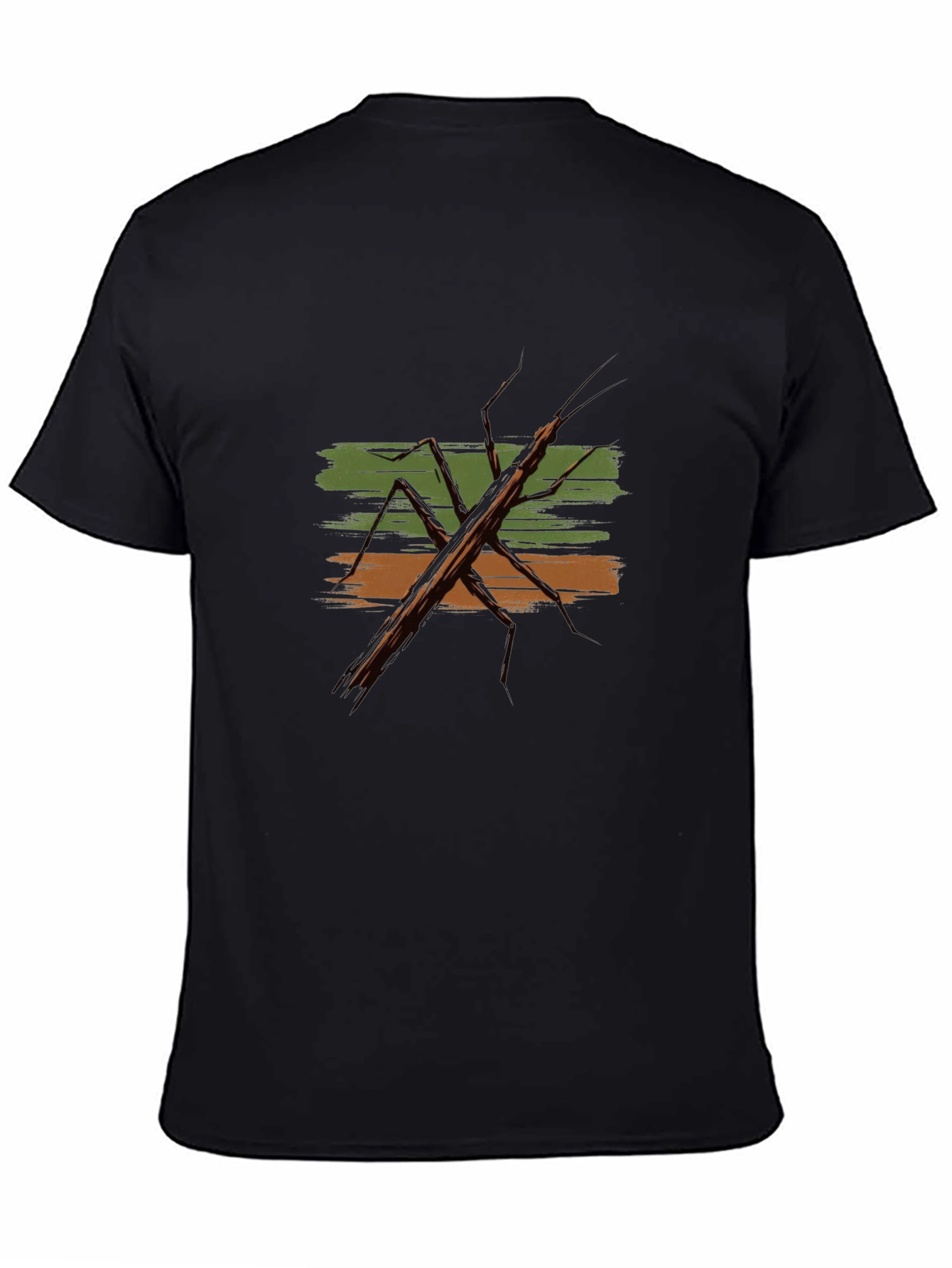 Showcase your love for nature with this unique graphic tee. This black t-shirt features a captivating design of stick bugs displayed against a rustic backdrop of earthy green and brown stripes. The intricate artwork brings a touch of wildlife to your wardrobe, making it a standout piece for casual wear. Crafted from a comfortable and breathable fabric, this t-shirt is perfect for everyday use. Whether you're exploring the outdoors, relaxing at home, or meeting up with friends, this shirt effortlessly combines style and comfort. The distinctive stick bug design is sure to spark conversations and add a touch of personality to your look. A must-have for insect enthusiasts and anyone who appreciates nature-inspired fashion.