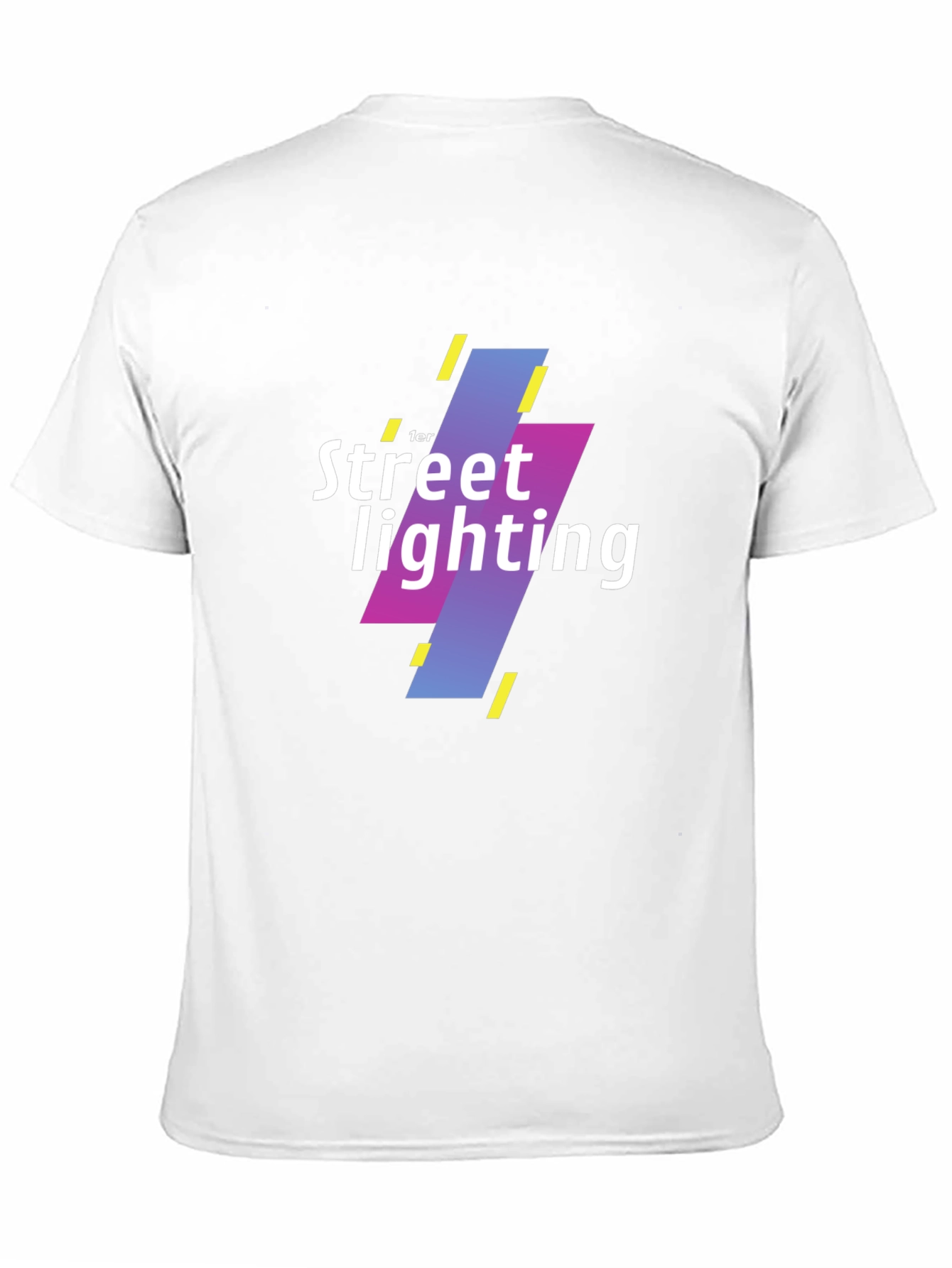 This black t-shirt features a bold and modern graphic design. The graphic showcases the text "Street Lighting" with an eye-catching array of colorful bars in shades of blue, purple, and yellow. Made from a comfortable and breathable fabric, this tee is perfect for everyday wear. Its stylish design makes it a great conversation starter, whether you're out with friends or running errands. The classic fit ensures a flattering look for all body types. Showcase your unique style with this trendy and comfortable graphic tee.