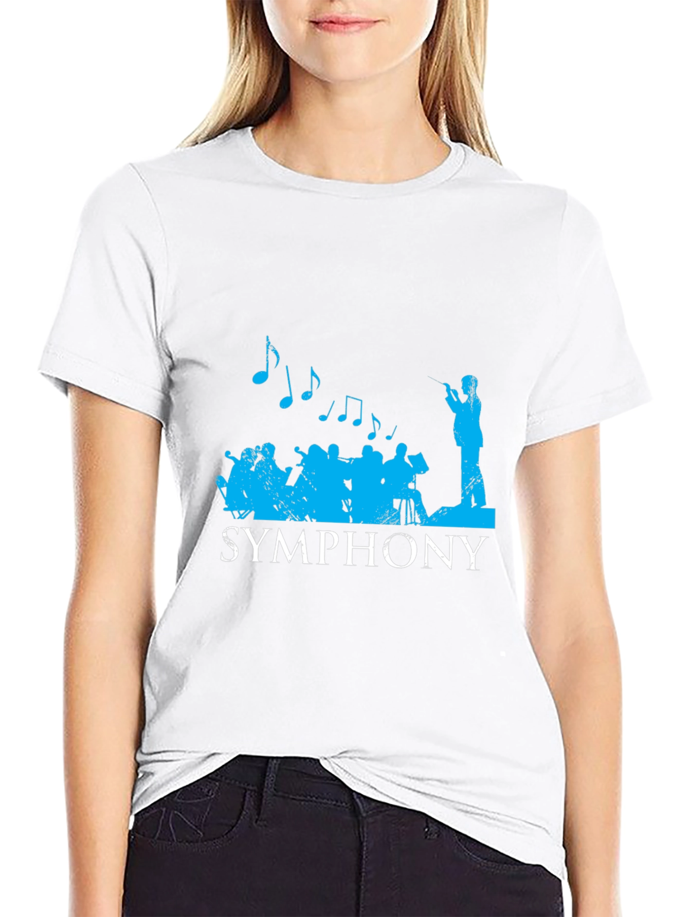 Show your love for classical music with this stylish black t-shirt. Featuring a vibrant blue graphic of a symphony orchestra, complete with musical notes and the word "SYMPHONY" boldly displayed, this tee is perfect for musicians, music enthusiasts, and anyone who appreciates the arts. The design captures the essence of a live performance, making it a unique and eye-catching addition to your wardrobe. Made from comfortable, breathable fabric, this t-shirt is ideal for everyday wear, concerts, or casual outings. Express your passion for music with this cool and artistic t-shirt.