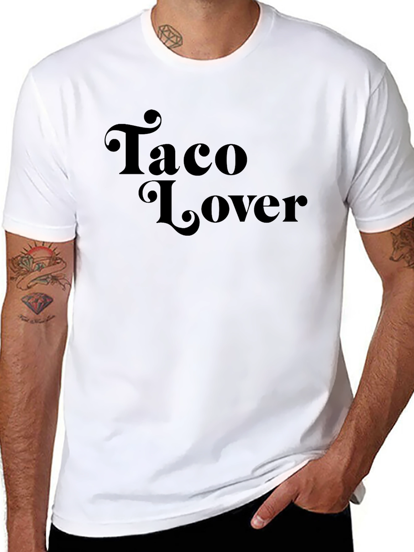Express your love for tacos with this stylish black T-shirt. Featuring the words "Taco Lover" in a retro-inspired font, this tee is perfect for casual wear and taco enthusiasts. Made from a soft, comfortable fabric, this T-shirt offers a relaxed fit for all-day comfort. The classic black color makes it easy to pair with jeans, shorts, or your favorite bottoms. Show off your passion for tacos in a fun and fashionable way with this must-have graphic tee. Ideal for taco Tuesdays, food festivals, or just hanging out with friends.