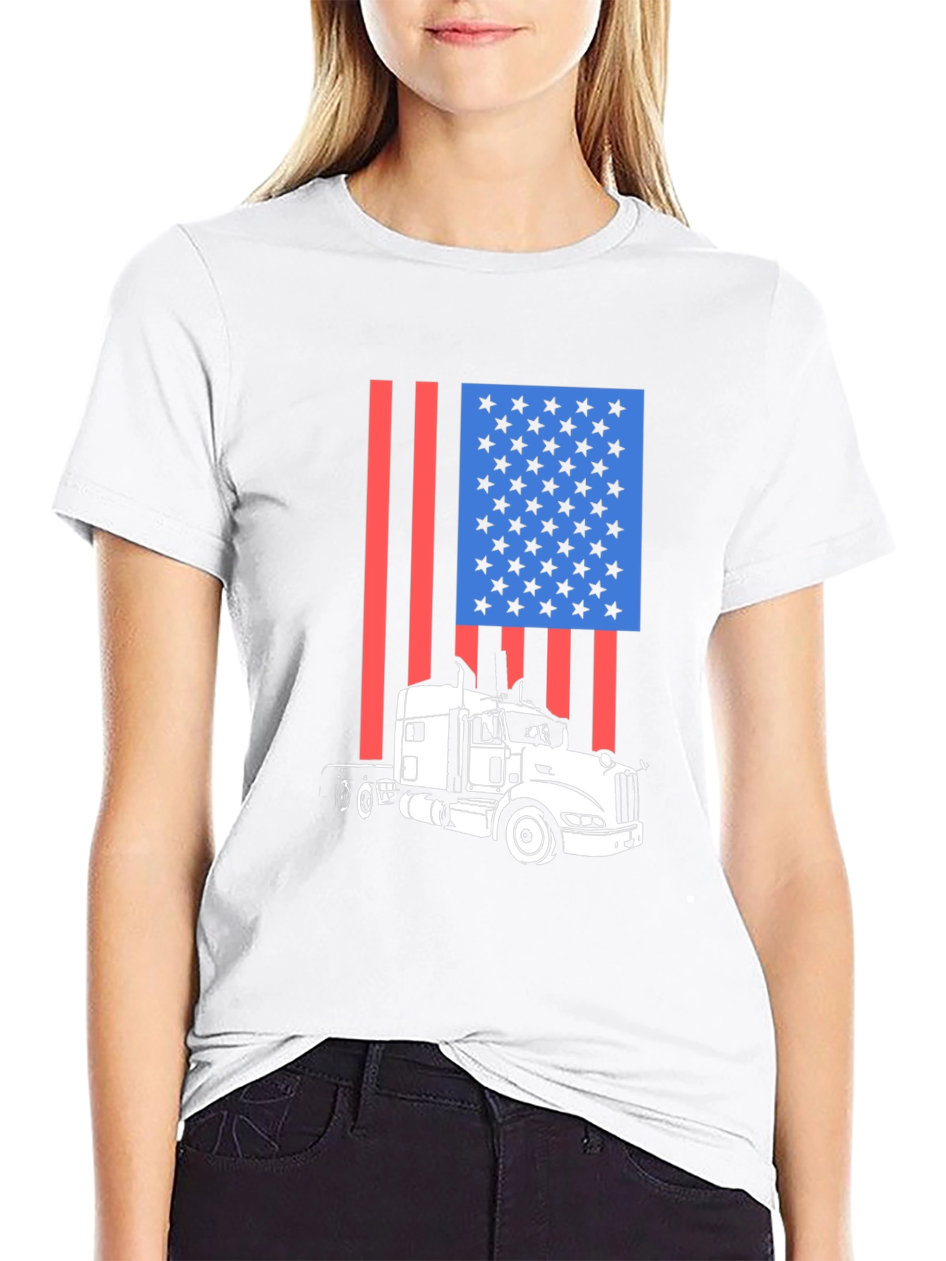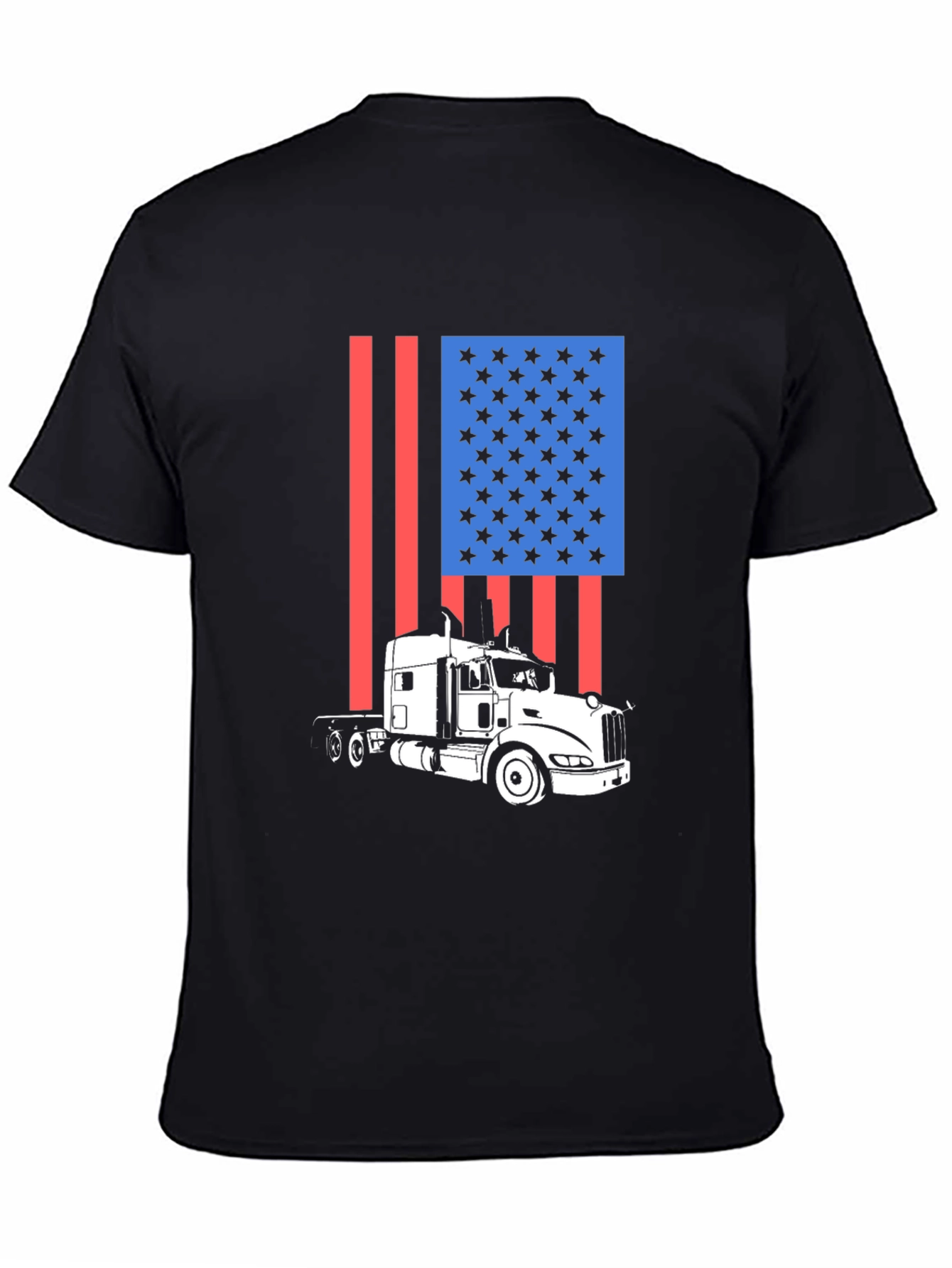Show your love for trucking and American pride with this stylish black t-shirt. Featuring a bold design, the shirt showcases a detailed illustration of a semi-truck overlaid on a stylized American flag. The design incorporates classic American colors - red, white, and blue, creating a patriotic and eye-catching look. Made from a comfortable, breathable fabric, this tee is perfect for everyday wear, whether you're on the road or relaxing at home. This unique t-shirt is a great way to express your passion for trucking and your American spirit. A perfect gift for truck drivers, trucking enthusiasts, or anyone who loves a cool, patriotic design. Get yours today and wear your pride!